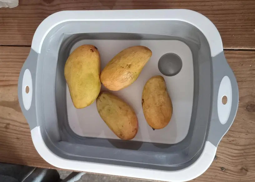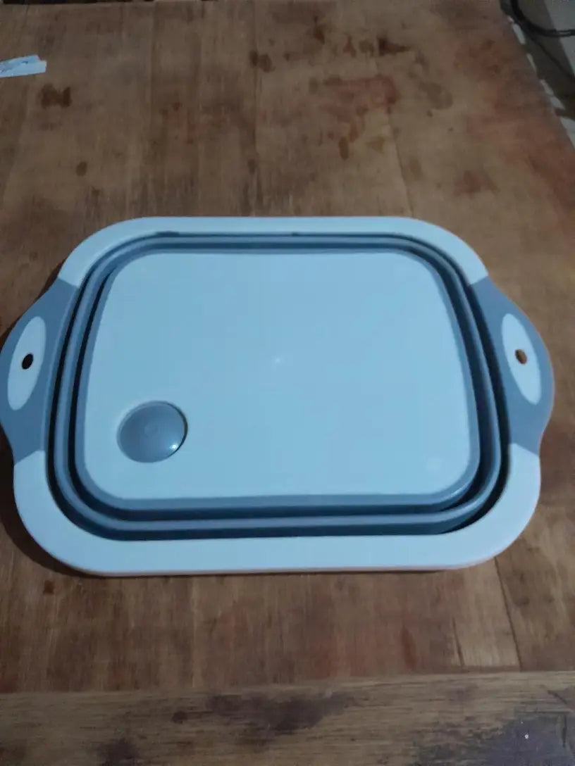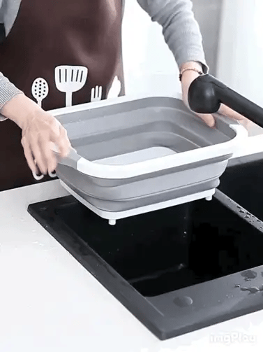 Ocupa menos que una tabla normal y es mucho más útil. Puedes lavar verduras, cortar carnes o guardar ingredientes ¡todo en una sola pieza!